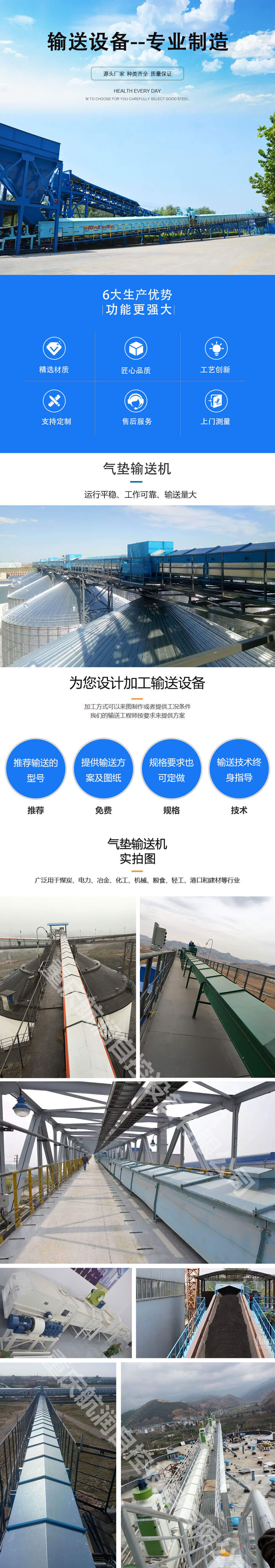 氣墊輸送機(jī)是用薄氣膜支承輸送帶及其上物料的帶式輸送機(jī);運(yùn)行平穩(wěn)、工作可靠、輸送量大、不撒料、運(yùn)行阻力小、輸送帶張力小、設(shè)備投資少,維修費(fèi)用低、便于密閉輸送,避免粉塵飛揚(yáng)。 廣泛用于煤炭、電力、冶金、化工、機(jī)械、糧食、輕工、港口和建材等行業(yè)。