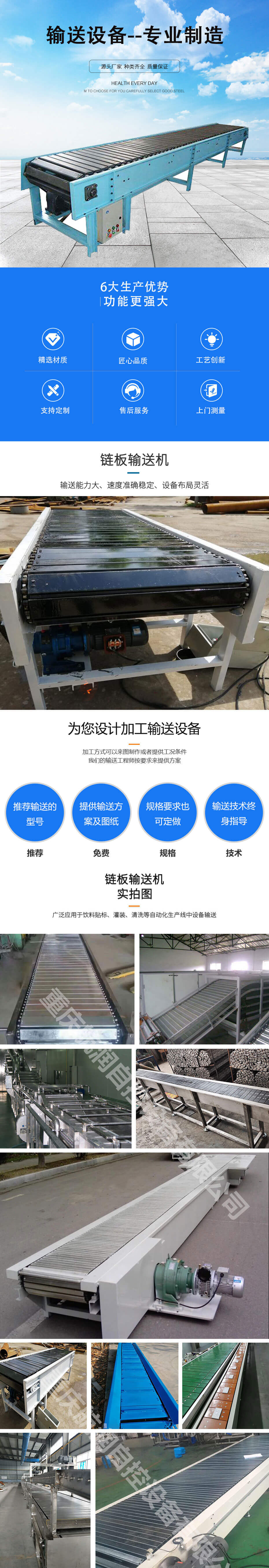 鏈板輸送機(jī)是一種利用循環(huán)往復(fù)的鏈條作為牽引動力,以金屬板作為輸送承載體的一種輸送機(jī)械設(shè)備;適用范圍廣、輸送能力大、牽引鏈強(qiáng)度高、可長距離輸送、線路布置靈活、通用性強(qiáng)、運(yùn)行平穩(wěn)可靠; 廣泛應(yīng)用在冶金、煤炭、化工、電力、機(jī)械制造及其他工業(yè)部門當(dāng)中。常用于摩托車、汽車總裝及焊接輸送線,包括各類制動器、發(fā)動機(jī)、起動機(jī)、磁電器門、發(fā)電機(jī)、電焊機(jī)等裝配生產(chǎn)線。